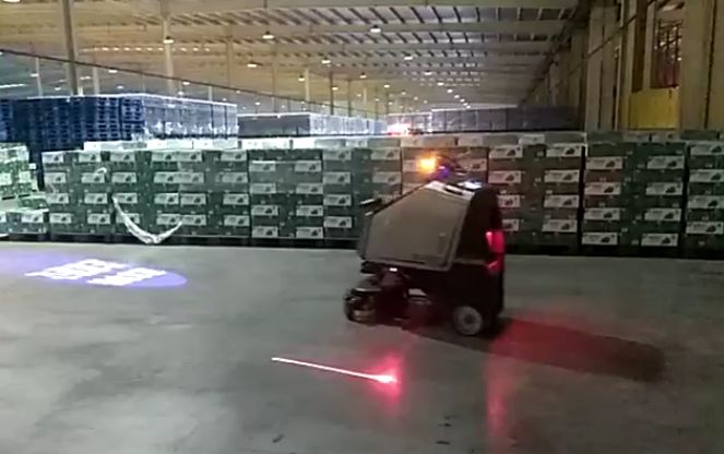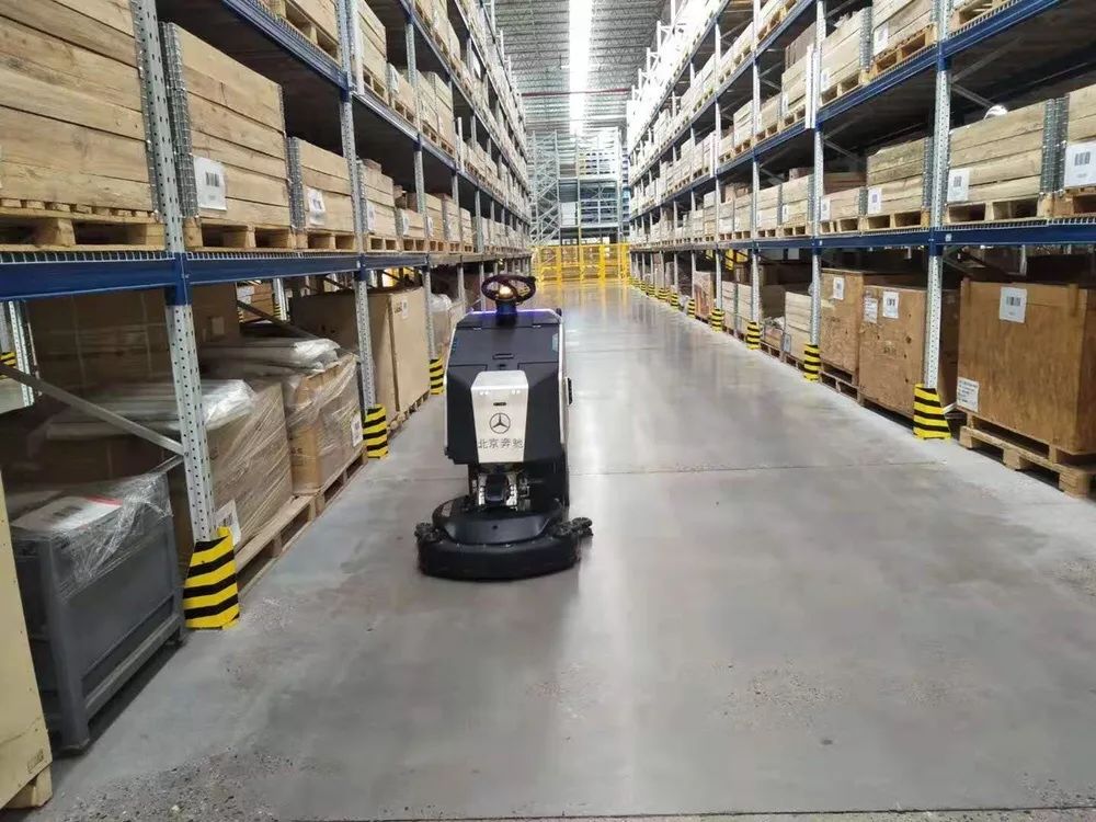 場景特點:無人倉庫中包含AGV無人搬運車作業,人工打掃清潔難度大,危險性高