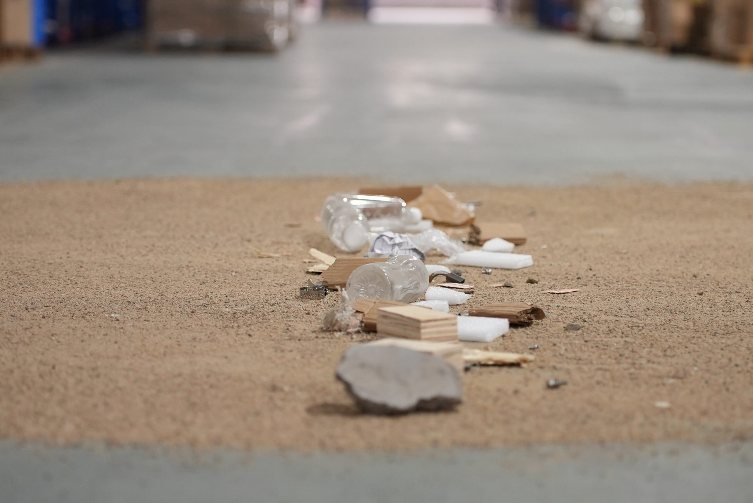 在連續清掃性能測試中,我們將紙箱碎片、塑料薄膜、泡沫塊、木屑、碎玻璃、螺絲/彈簧、飲料瓶、大小石塊等常見垃圾依次排開,BEETLE展現出卓越的連續清掃性能,能輕松應對各類工廠倉庫的清掃需求。
